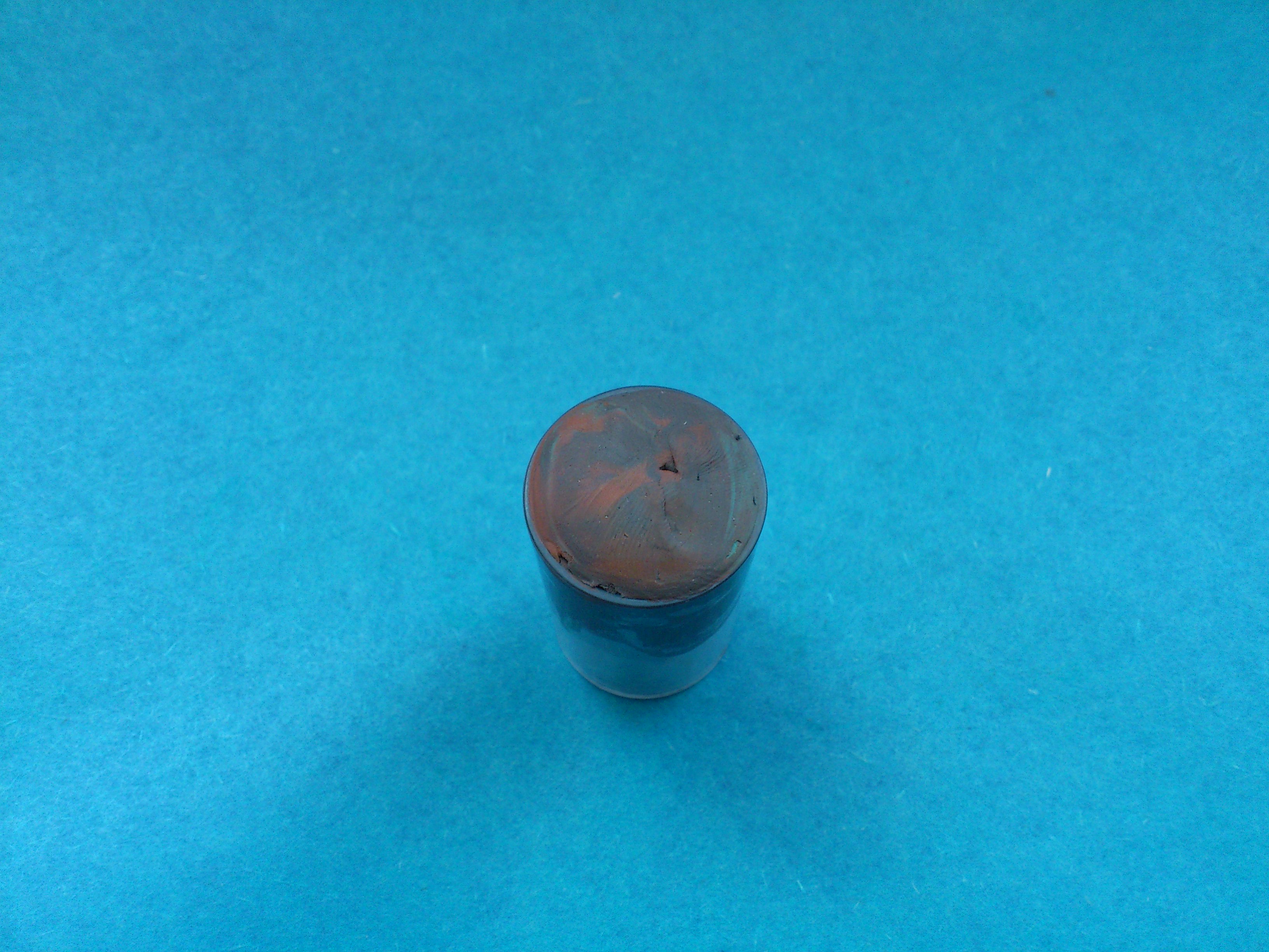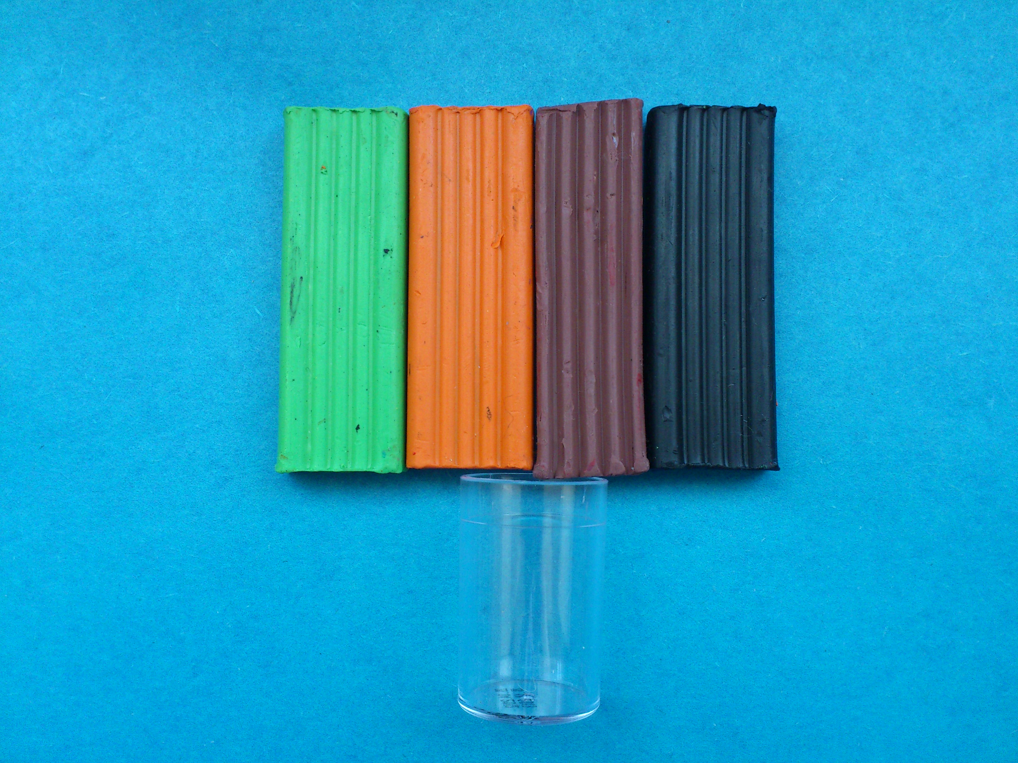 1. Подготовьте для работы маленькую крышечку любого цвета. Из набора пластилина обязательно отберите коричневый и черный брусочки, ведь они понадобятся для создания грунта, а также зеленый и оранжевый цвета.