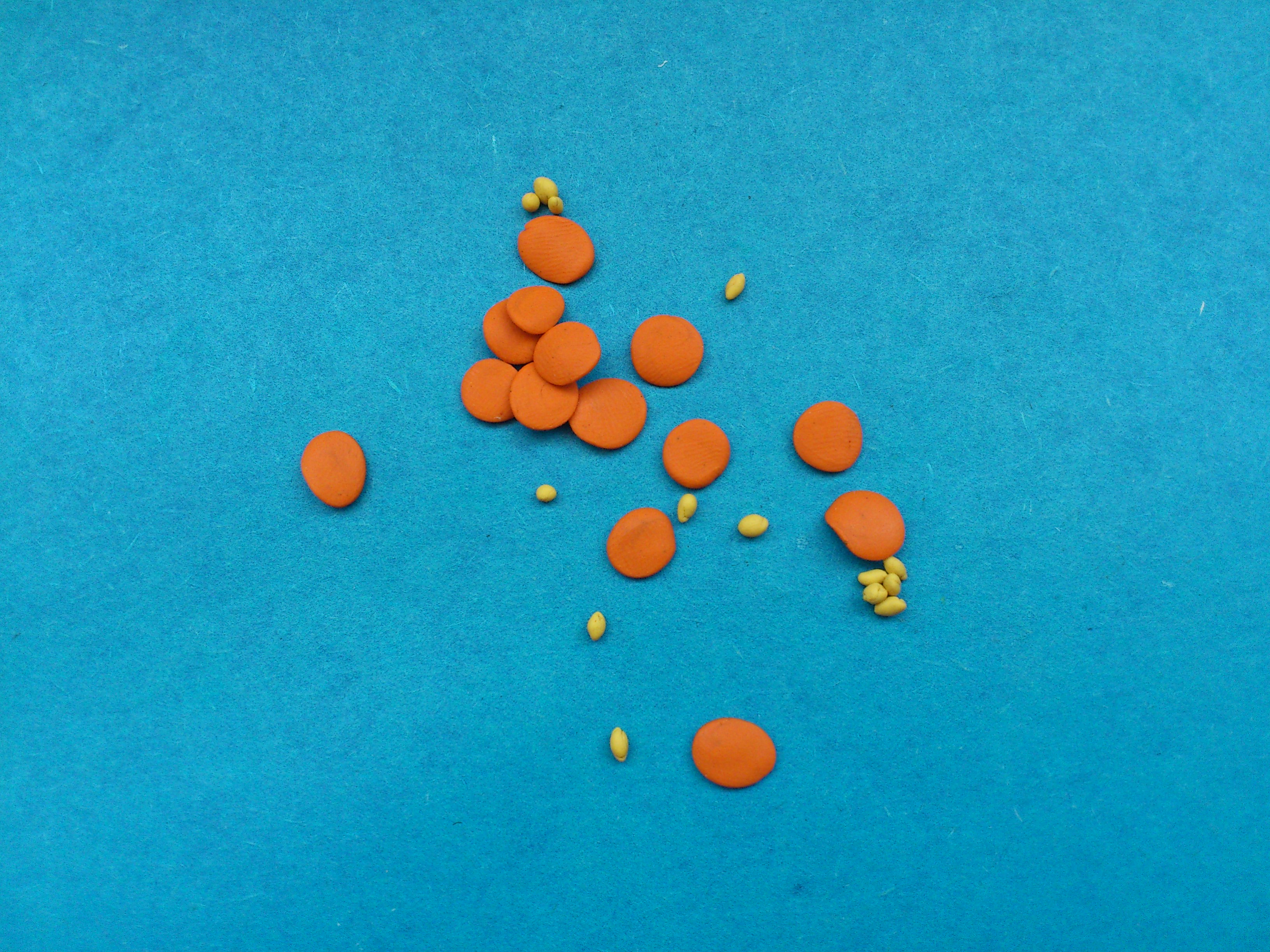5. Для лепки цветочков создайте множество плоских лепешек и столько же мелких желтых шариков.